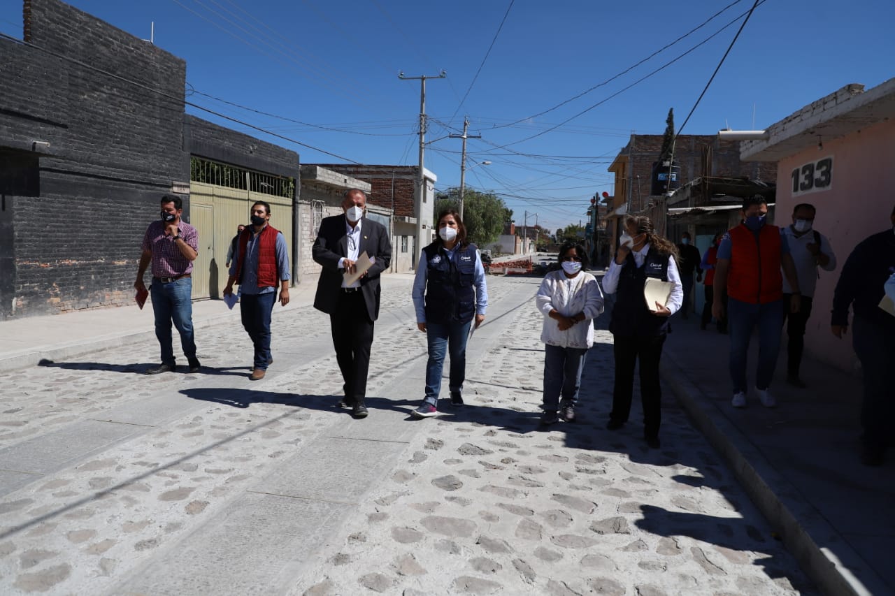 En la colonia Santa Rita Norte, la alcaldesa supervisó la obra integral en la calle Querétaro, donde se invierten 3.9 millones de pesos para colocación de dos mil 181 metros cuadrados de pavimento de piedra ahogada, guarniciones, banquetas, red de agua potable, tomas domiciliarias, registros pluviales, señalamientos e iluminación LED. La obra lleva un 91 por ciento de avance y su entrega se espera a inicios de diciembre.