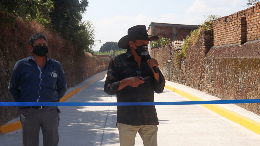 “Que tal amigos de Yuriria, estamos prácticamente inaugurando esta calle las Delicias en este Barrio de Tareta. Fue a base de concreto hidráulico a 119.08 metros lineales con 15 centímetros de espesor y lógicamente con sus guarniciones y banquetas. Fue una inversión de un millón ciento tres mil trecientos ochenta y ocho pesos con ochenta y dos centavos. Calle nuevecita de concreto muchas felicidades.”
