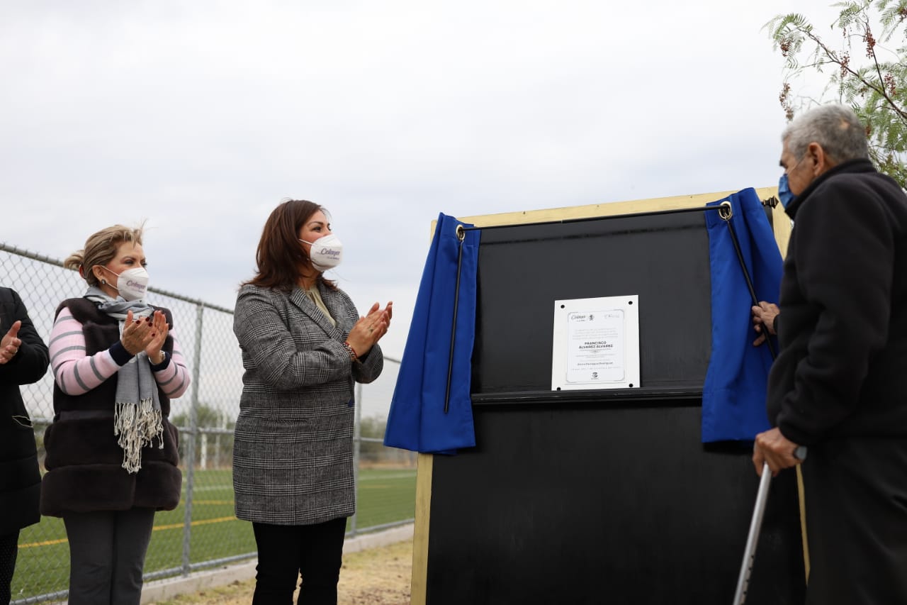 El campo de fútbol americano sintético llevará por nombre “Francisco Álvarez Álvarez”, en tanto que, los campos 1 y 2 de béisbol tendrán el nombre de “Pedro Cerda Ovalle” y “Juan Antonio Díaz Ramos”, respectivamente. Las placas con los nombres fueron en estos espacios deportivos municipales.