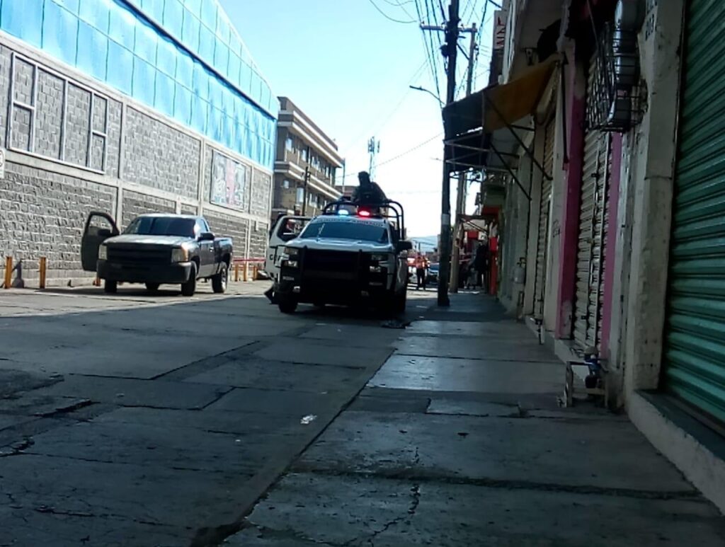 En dicha calle trascendió que cerca de las 2:30 de la tarde del la lunes, sujetos armados arribaron a una tienda de venta de ropa y sin mediar palabra dispararon en diversas ocasiones hasta dejar sin vida a un masculino del que hasta el momento se desconoce su identidad.