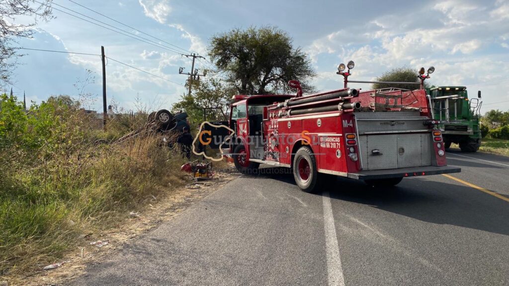 Tres personas lesionadas fue el saldo que dejo un accidente vehicular tipo volcadura sobre la carretera Salvatierra Yuriria entre las comunidades de Santo Tomas y San Pedro, en el incidente se vio involucrado una camioneta blazer color verde en el cual se transportaban dos adultos mayores y un hombre, hasta el momento se desconoce la mecánica de los hechos.