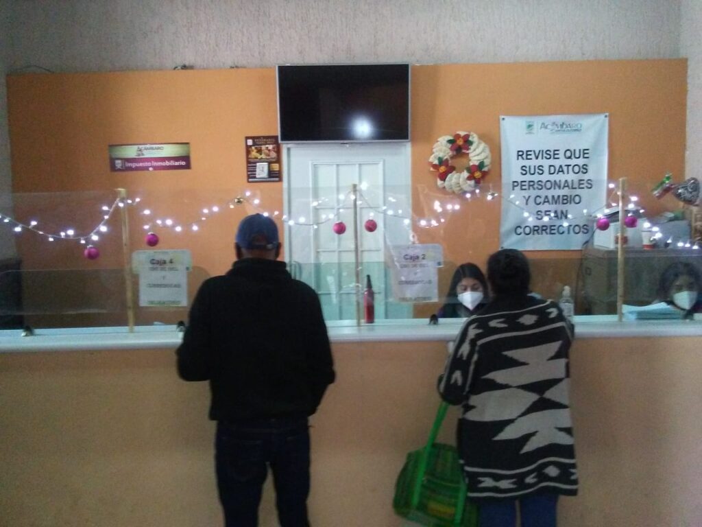 A partir del día de hoy, desde temprana hora, la ciudadanía acambarense, cumplida en el pago de sus contribuciones, está acudiendo en demasía a Presidencia Municipal para pagar de manera anual su impuesto predial, y aprovechar el 15% de descuento que se otorga por pago adelantado durante los meses de enero y febrero; además de que el contribuyente al hacer el pago de su recibo entra al Sorteo Predial 2021, que se llevará a cabo el día 11 de abril de manera virtual a través de las redes sociales, y donde tienen la posibilidad de obtener uno de los premios, entre ellos un automóvil último modelo.