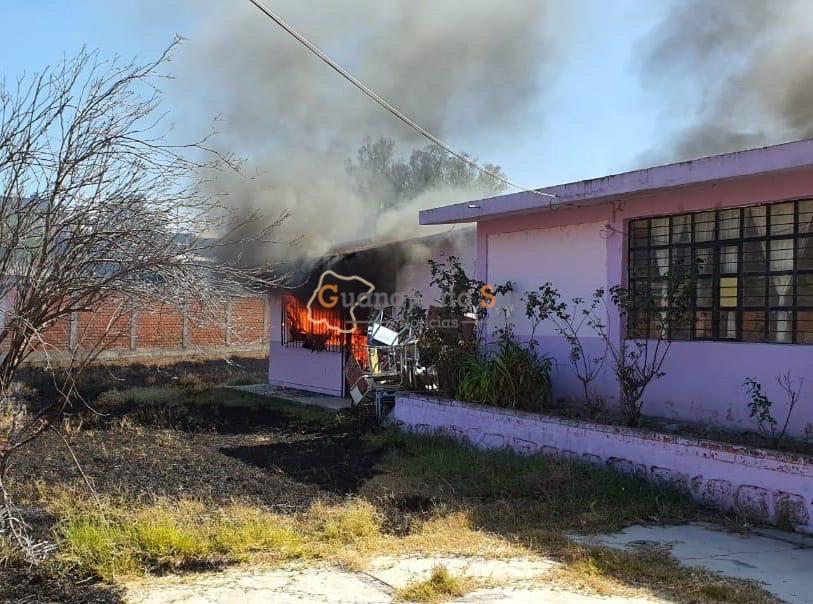 Se registro un incendio en el interior de la Escuela Primaria Emiliano Zapata de la comunidad de Guadalupe municipio de Acámbaro.