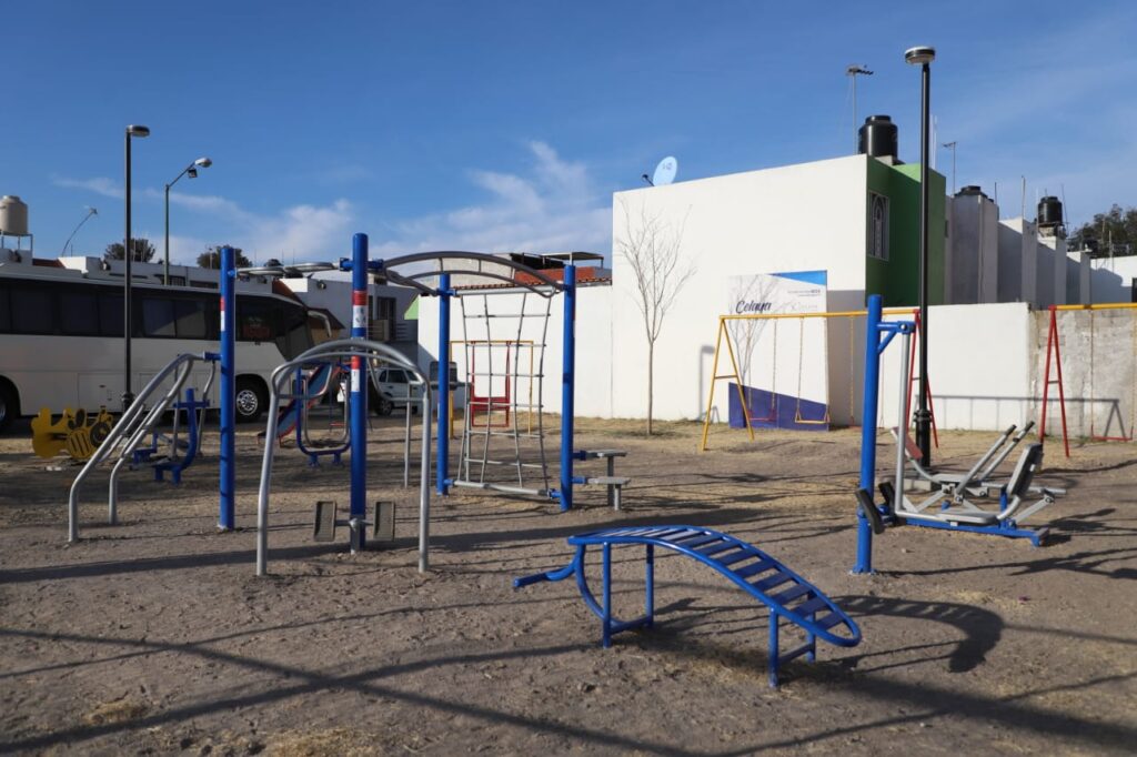 En los espacios públicos de Girasoles primera y tercera sección, también se instalaron módulos de gimnasio al aire libre, juegos infantiles, se nivelaron algunas áreas irregulares y se rehabilitaron las áreas verdes.