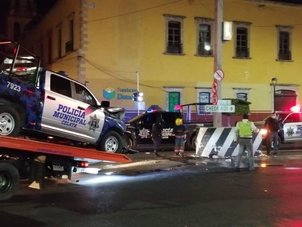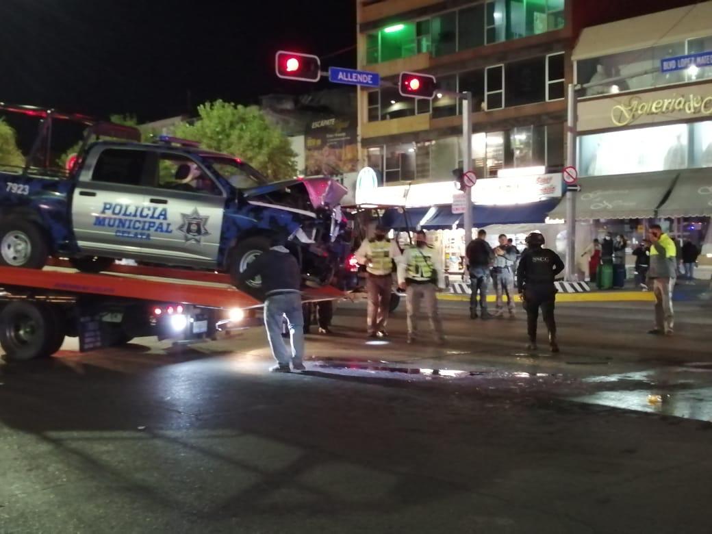 Mencionaron que al tratar de esquivarla se impactaron contra el muro de contención, justo donde se encuentra el poste de las cámaras de vídeo vigilancia, quedando atrapados dentro de la patrulla.