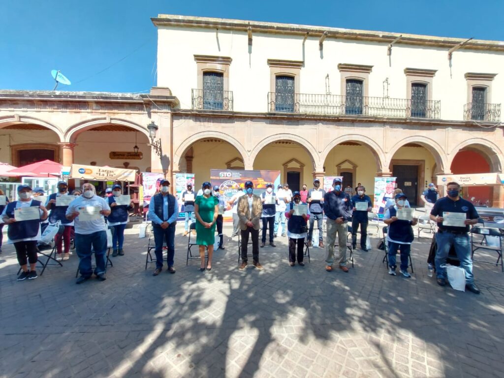 Con la participación del Diputado Local Germán Cervantes Vega, la Presidente Municipal Karla Alejandrina Lanuza Hernández y el Secretario de Desarrollo Económico Sustentable en Guanajuato Mauricio Usabiaga Díaz Barriga a través del programa En Marcha (Mi Tiendita al Cien) entregaron apoyo a 29 micro empresarios de zona centro y comunidades.