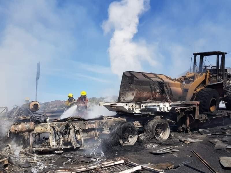 Al arribar, ya se encontraban elementos de bomberos de Zinapécuaro quienes una hora antes habían atendido un accidente de un tráiler que trasladaba aguacates y que también se incendió.