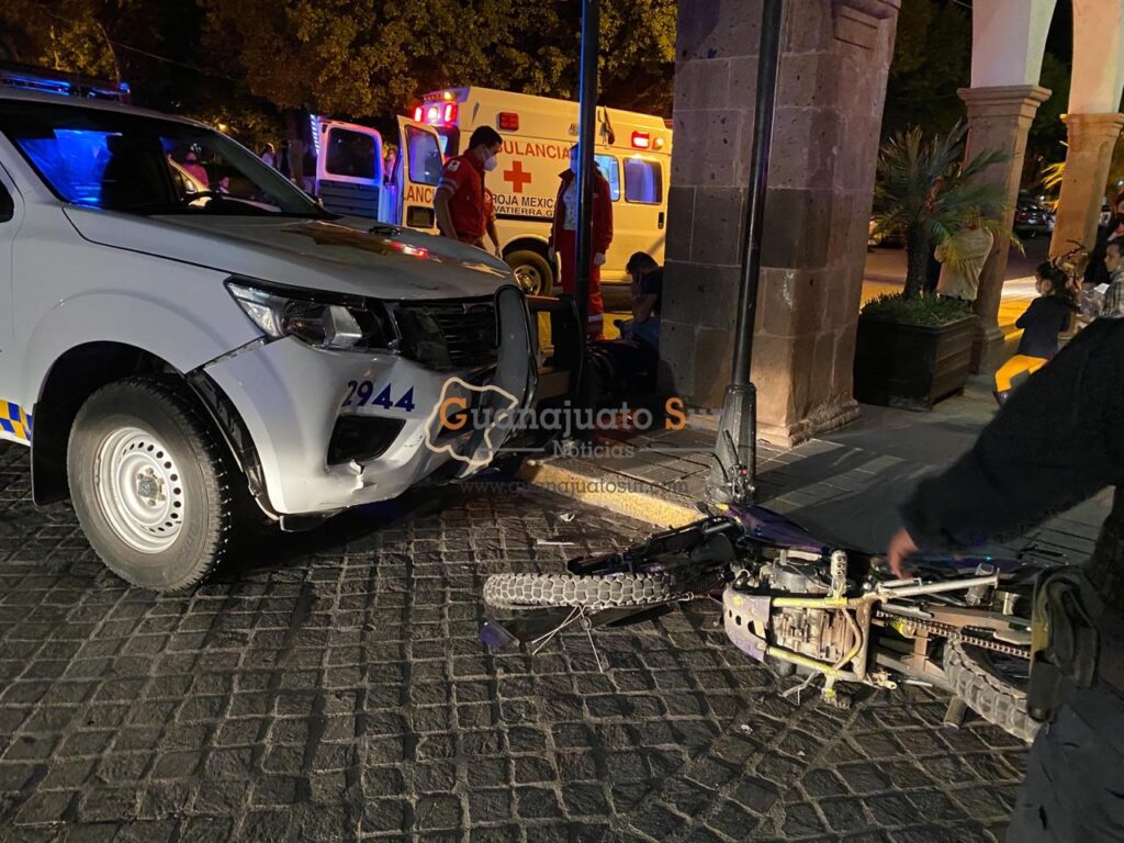 En la calle Benito Juárez esquina con Francisco I. Madero se registró un accidente donde se vieron involucrados una patrulla de la policía municipal y una motocicleta dejando tres personas lesionadas, siendo dos hombres que viajaban en el el vehículo de dos ruedas y una mujer policía.