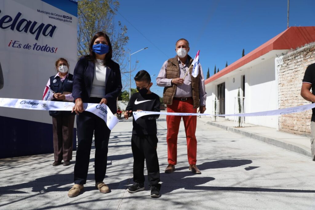 Este miércoles, la alcaldesa también acudió a la comunidad de El Puente, donde hizo entrega de la obra integral de la calle Yuriria, en la que se pavimentó una longitud de 393 metros por seis metros de ancho, se supervisó y repararon las redes de agua y drenaje, se sustituyeron 16 postes y se colocaron 24 luminarias con tecnología LED, todo ello con inversión municipal de 4.6 millones de pesos.
