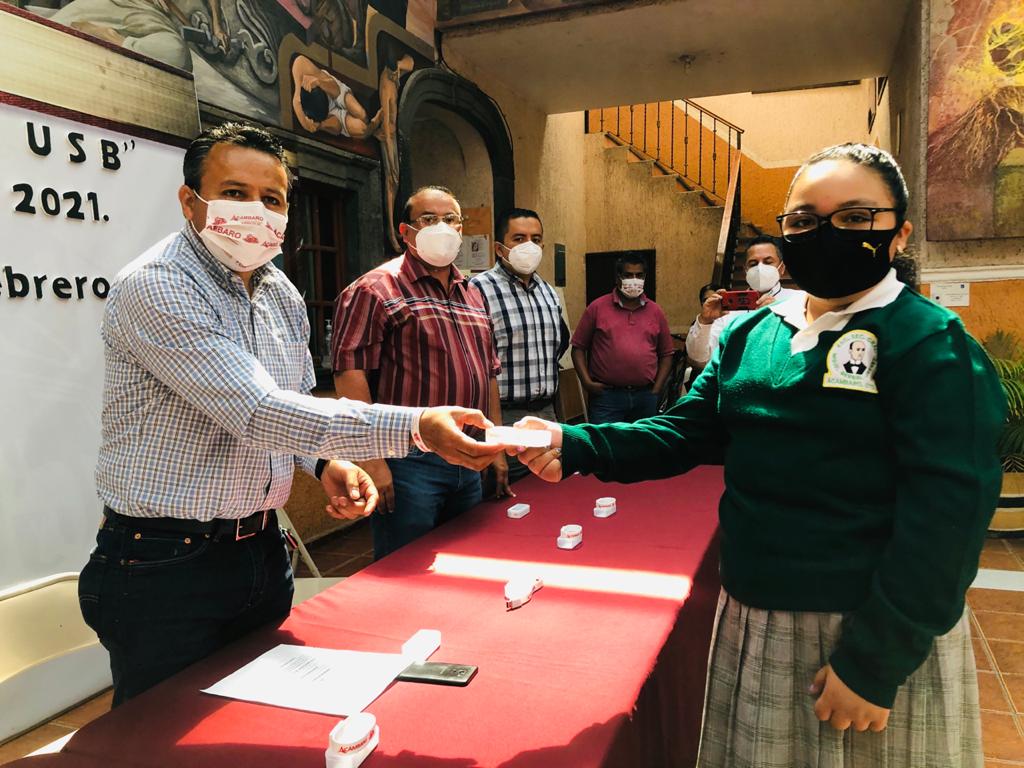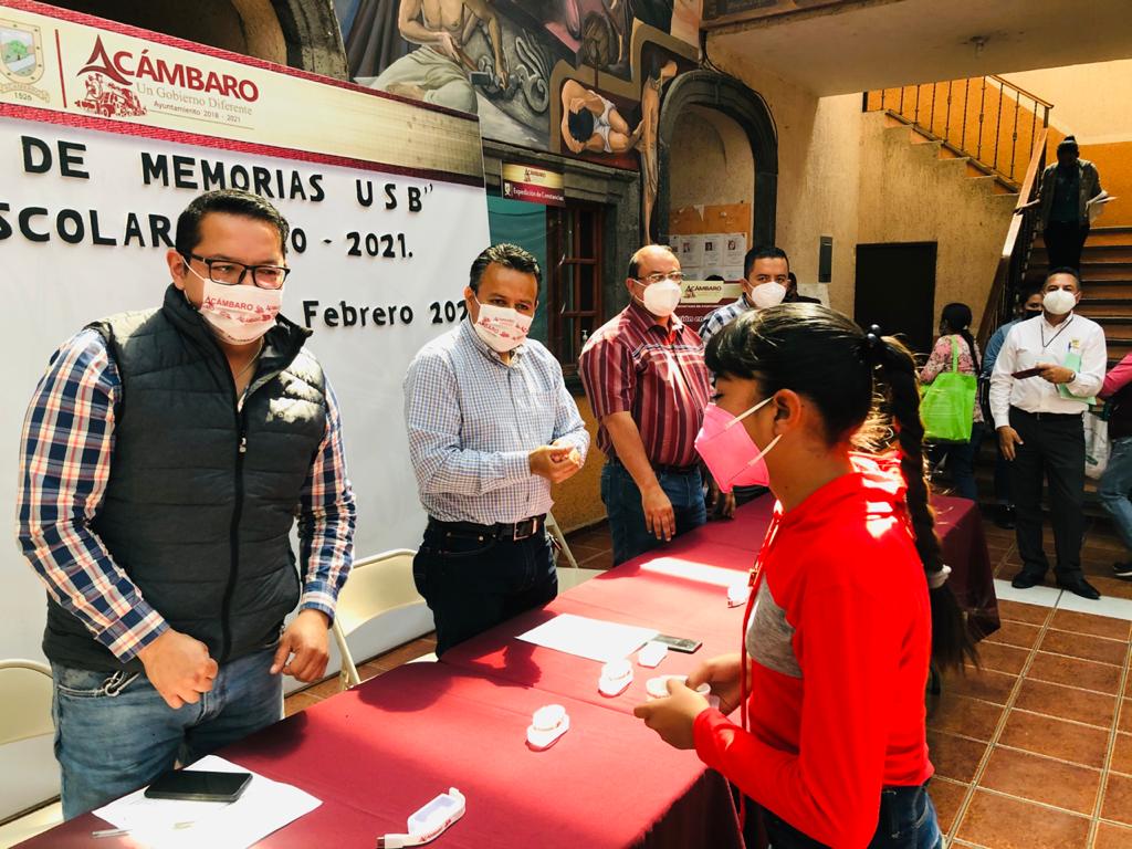 - El Gobierno Municipal de Acámbaro, entregará 790 memorias USB a estudiantes de nivel secundaria y bachillerato de la localidad, como implementos que les serán útiles para sus clases virtuales que toman desde sus hogares, debido a la pandemia del COVID-19