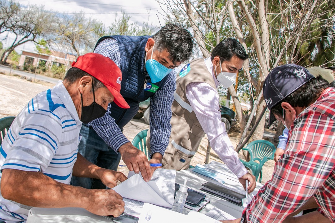 Para el tanque de agua se realizaron los trabajos de suministro de tubo de PVC, construcción de tanque elevado de 100 mil litros de capacidad y 15 metros de altura, 16 cajas en operación de válvula y la instalación de 193 tomas domiciliarias.