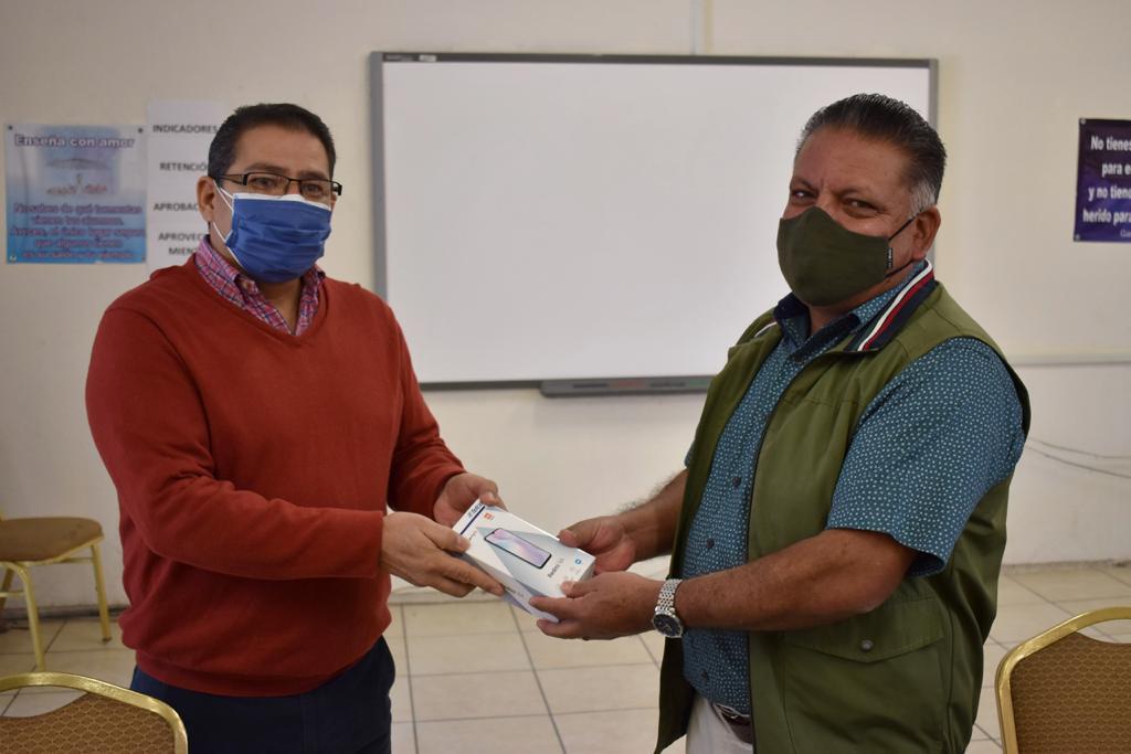 Este martes, el alcalde, Moisés Guerrero Lara entregó 10 equipos de telefonía móvil para estudiantes de la Escuela Secundaria Técnica No. 8, en los que se aplicaron recursos por con 59 mil pesos.