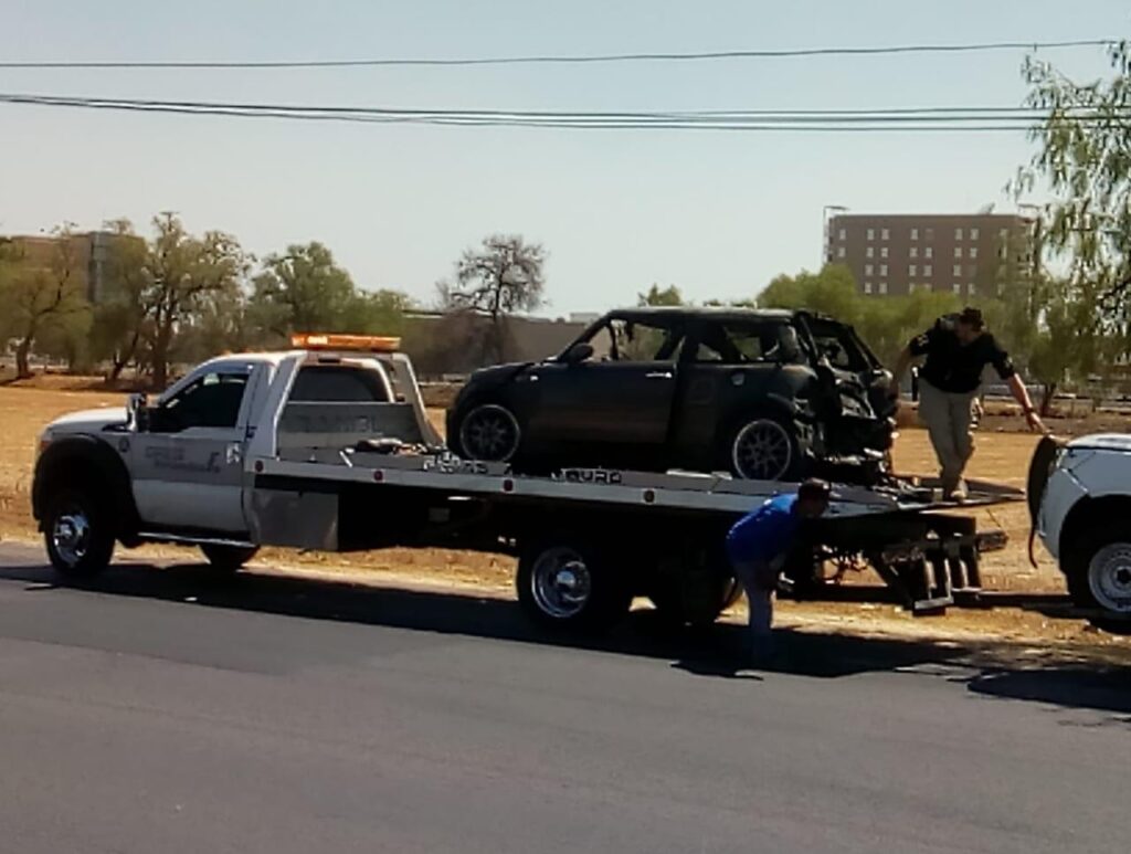 En el transcurso de la persecución justo en la desviación de Álvaro Obregón y Av Irrigación una unidad policiaca se impactó con un auto en color gris resultando dos elementos lesionados y posterior el derrape de una motocicleta policial resultando otro uniformado herido.