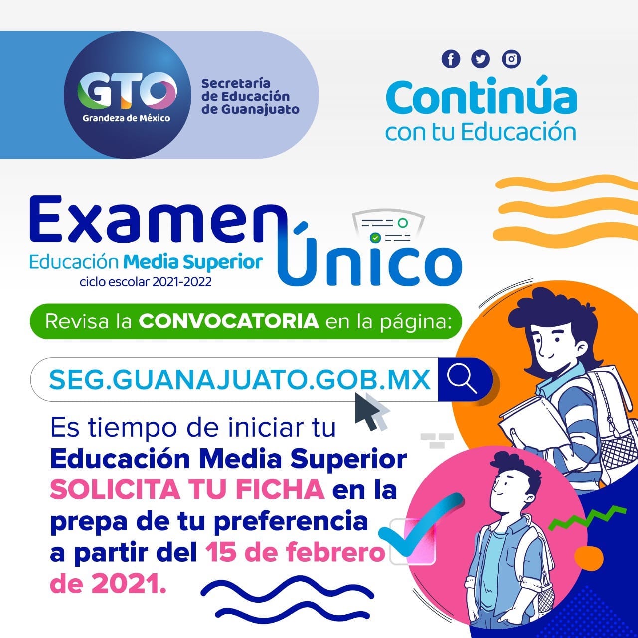 La Secretaría de Educación de Guanajuato, convoca a los alumnos que actualmente cursan el tercer grado y egresados de secundaria, para que participen en el Examen Único, EXUMS, para el ingreso al nivel medio superior en planteles públicos en el ciclo escolar 2021-2022.
