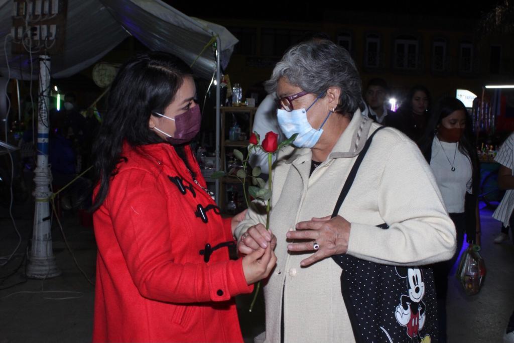Teniente Mendoza, también entregó de forma personal, rosas a las parejas que paseaban en el jardín, sin faltar la distribución de cubrebocas, gel antibácterial.