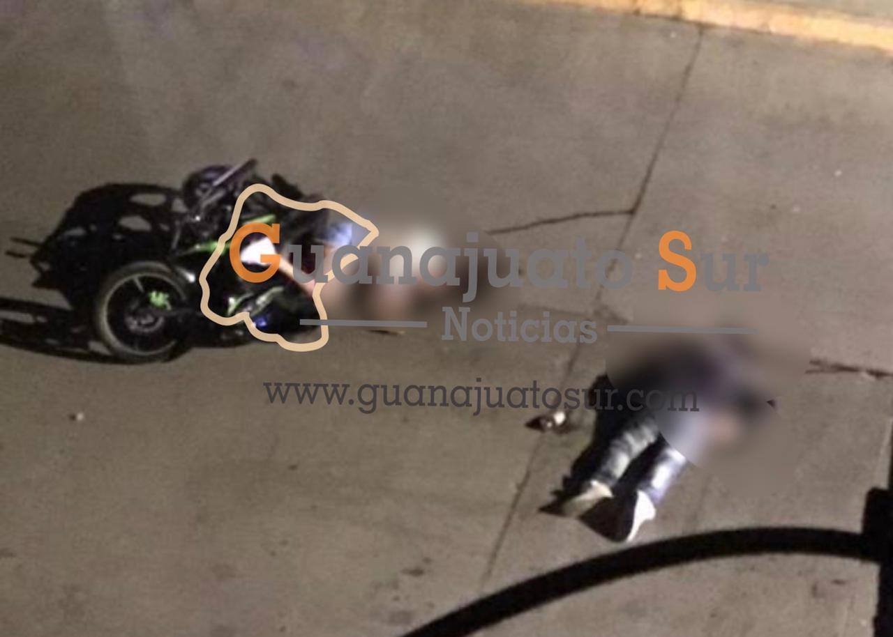 Las víctimas que habían sido ultimadas se encontraban a un costado de una motocicleta de la marca itálika en color negro con verde en la que aparentemente viajaban.