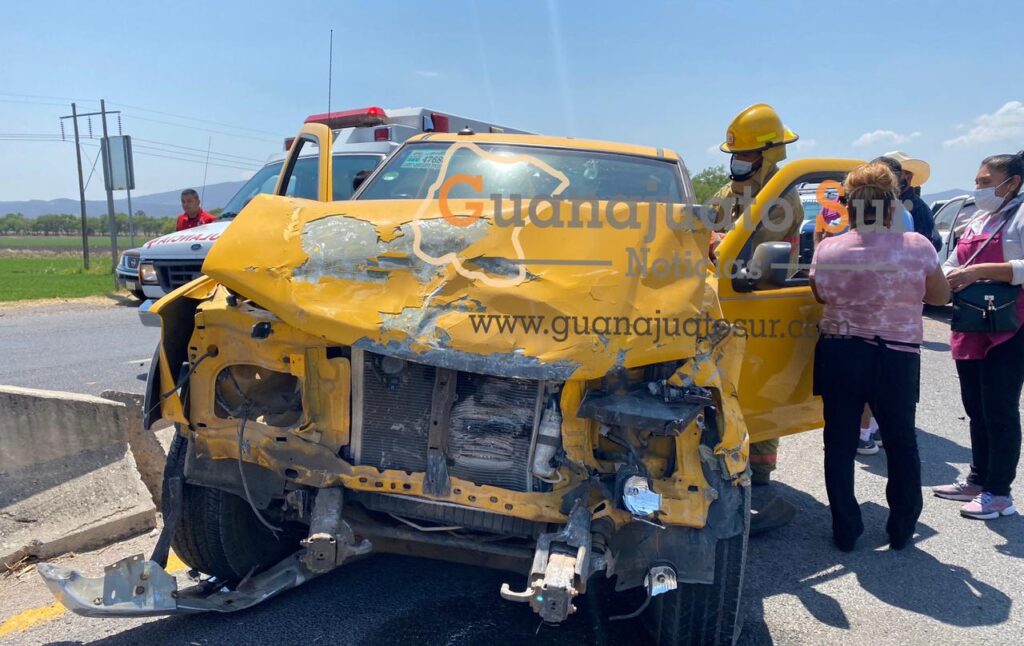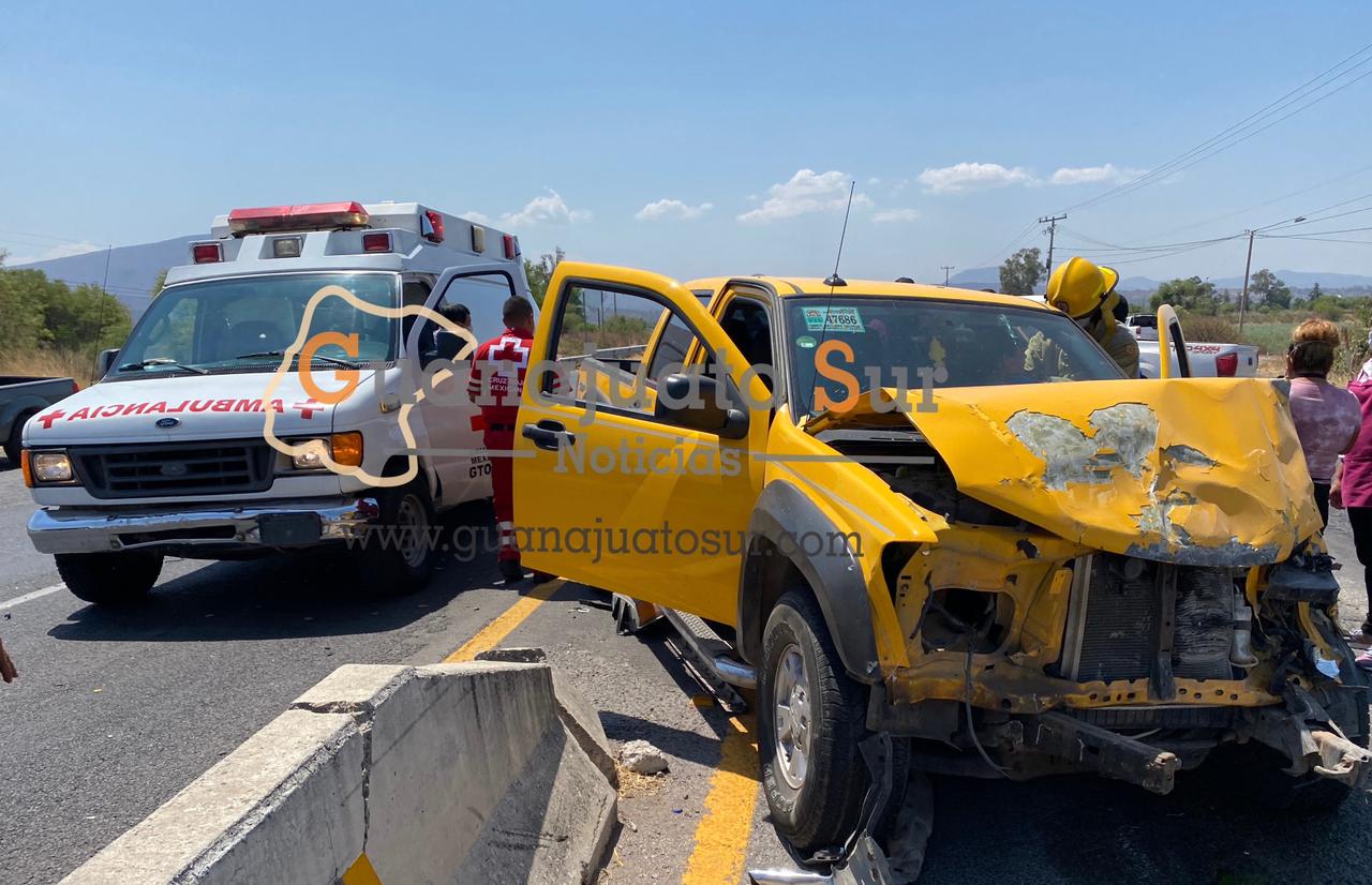 Dos personas resultaron lesionada tras un fuerte accidente vehicular del tipo choque sobre la carretera Celaya-Salvatierra a la altura de la comunidad del Fénix.