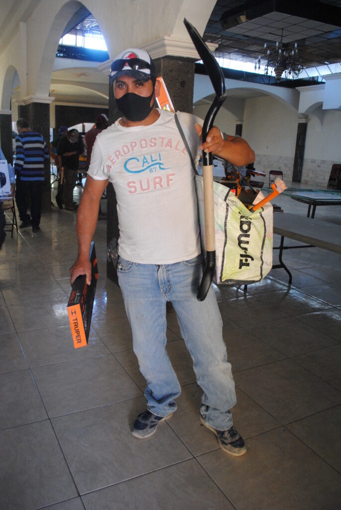 El beneficiario, Sr. Humberto Rojas, agradeció a las autoridades presentes estos apoyos, señalando que van a ser de gran utilidad para todos los que lo recibieron y pidió que no se les olvide y que se sigan brindando más beneficios a más albañiles de Tarimoro.