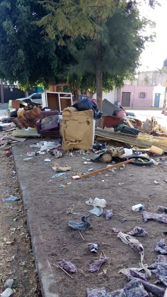 Entre los residuos que se recolectaron, se encuentran llantas, escombro, muebles y aparatos descompuestos, botellas de vidrio, entre otros, que se encontraban abandonados en lotes, calles, áreas públicas y en algunos patios de los vecinos.
