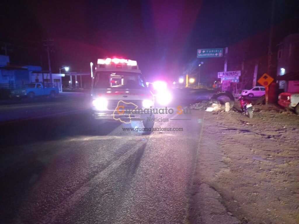 Autoridades informaron que recibieron un reporte al sistema de emergencias al rededor de aproximadamente a las 01:00 de la mañana de este domingo obre un derrape de motocicleta, sobre la carretera Salvatierra-Acambaro a la altura de la colonia Molino de Avila.