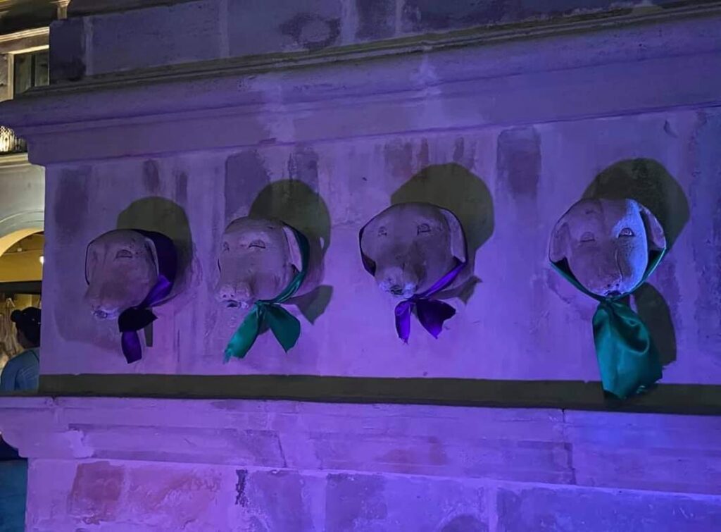 Asimismo en la fuente de los perros en la plaza libertadores, fueron colocados pañuelos al rededor de las figuras de perros en dicha fuente.