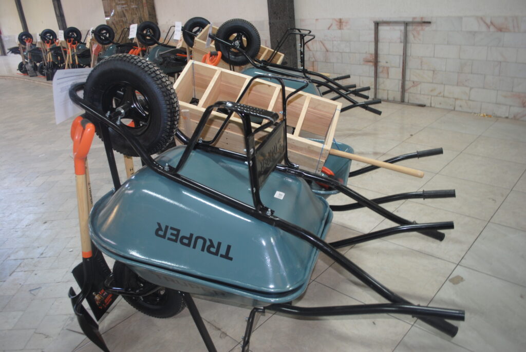 Dichos apoyos se entregaron en forma de kits, de los cuales cada paquete constaba de: 3 carretillas, 1 pala grande, 3 palas chicas, 1 plástico negro, 3 adoberas, 2 picos, 1 dielgo y 2 azadones, los cuales se podrán utilizar para lo que los beneficiarios consideren oportuno en sus labores diarias.