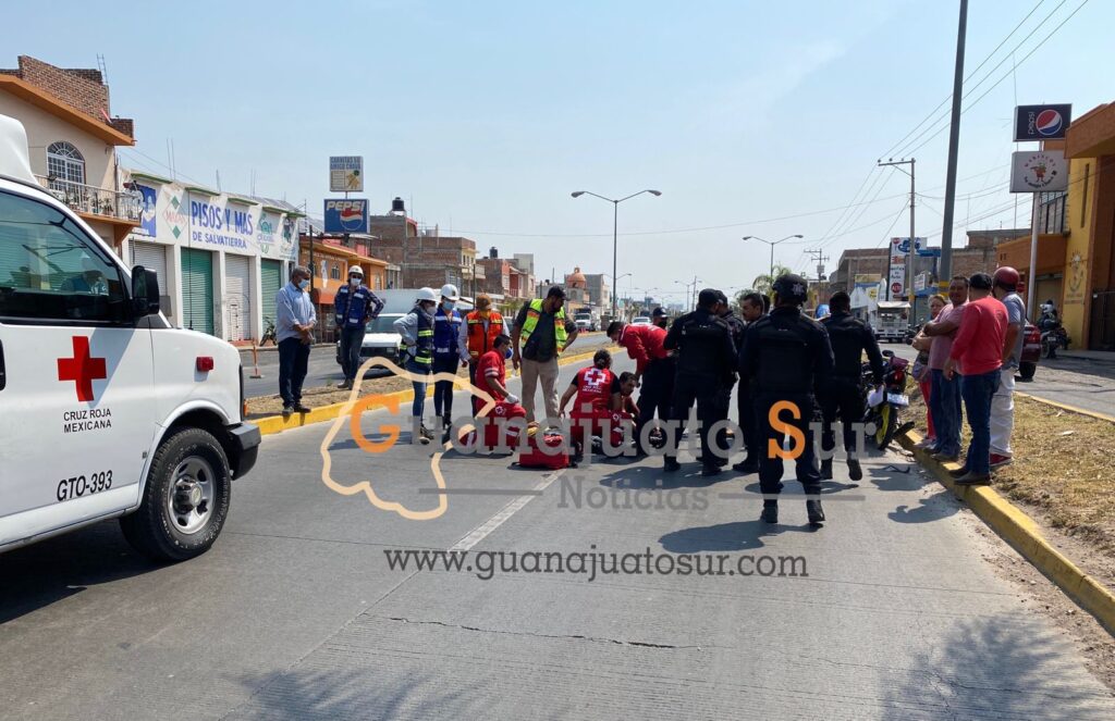 Acudieron como primeros respondientes elementos de Seguridad Pública y Tránsito Municipal encontrando sobre el asfalto a dos hombres de entre 20 a 25 años de edad con fuertes heridas y a un costado la motocicleta dañada.