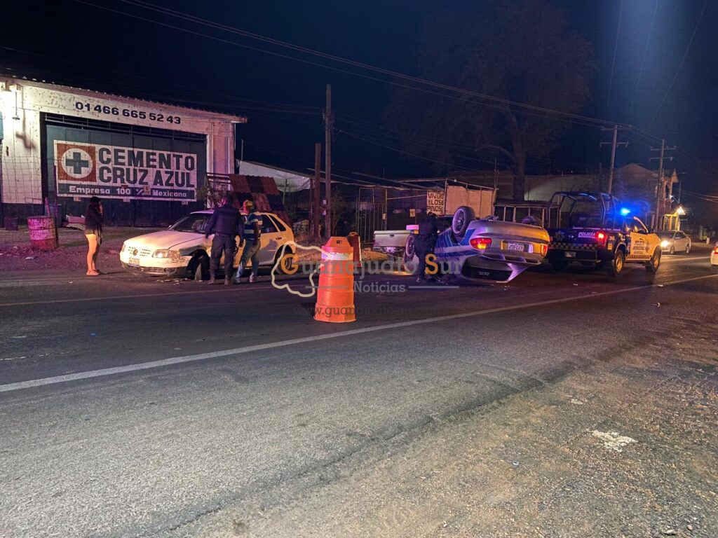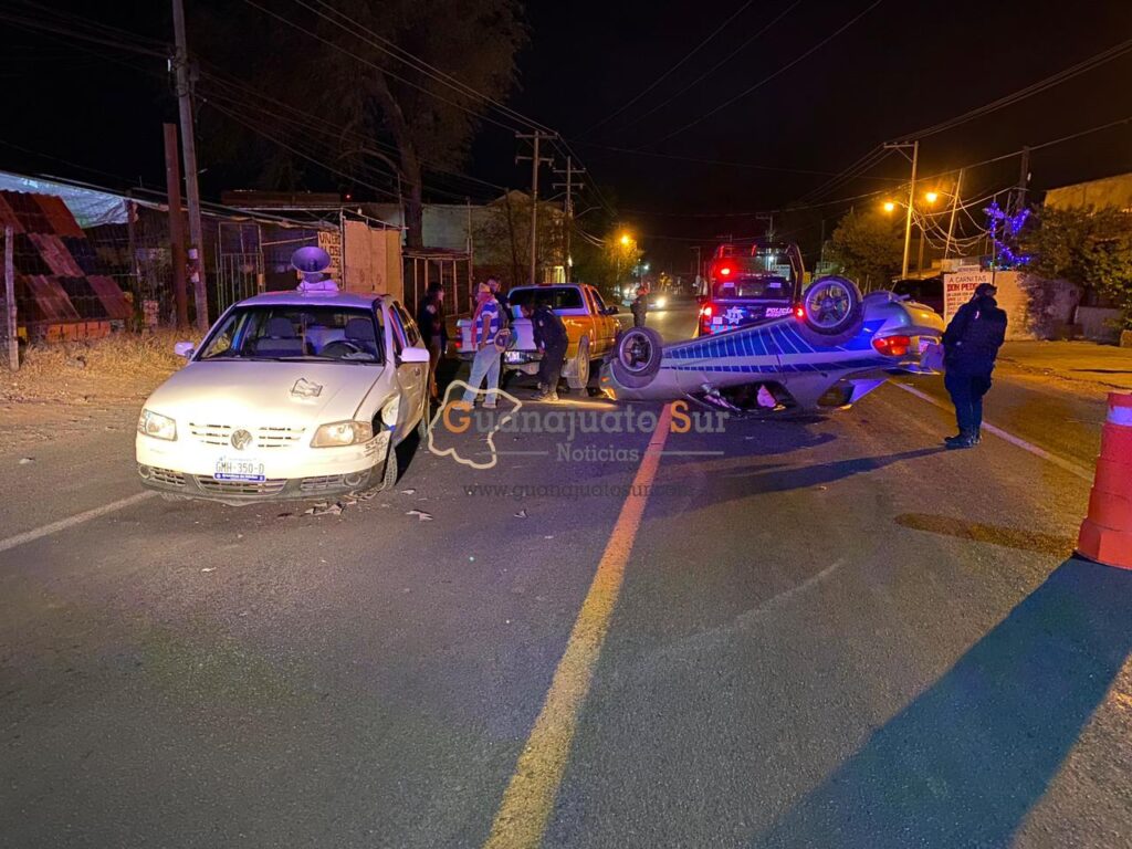 Un vehículo volcó sobre la carretera Salvatierra-Yuriria, a la altura de la comunidad de San Pedro de los Naranjos golpeando a otro vehículo; hubo dos lesionados que se retiraron del lugar por sus medios