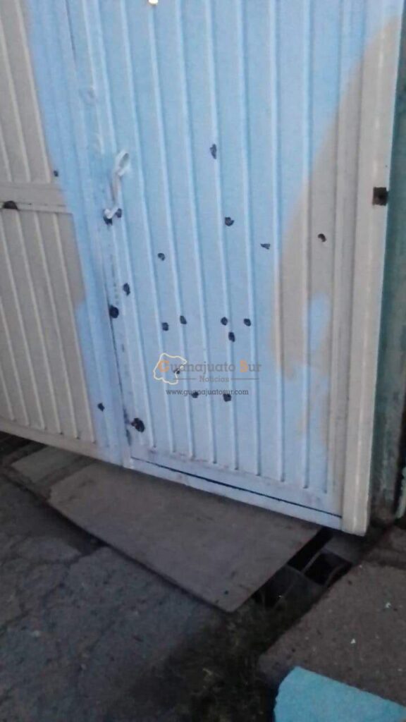 Mientras que la zona fue acordonada para preservar las evidencias con los daños de al menos 20 disparos de bala que presentó el portón de acceso al inmueble.