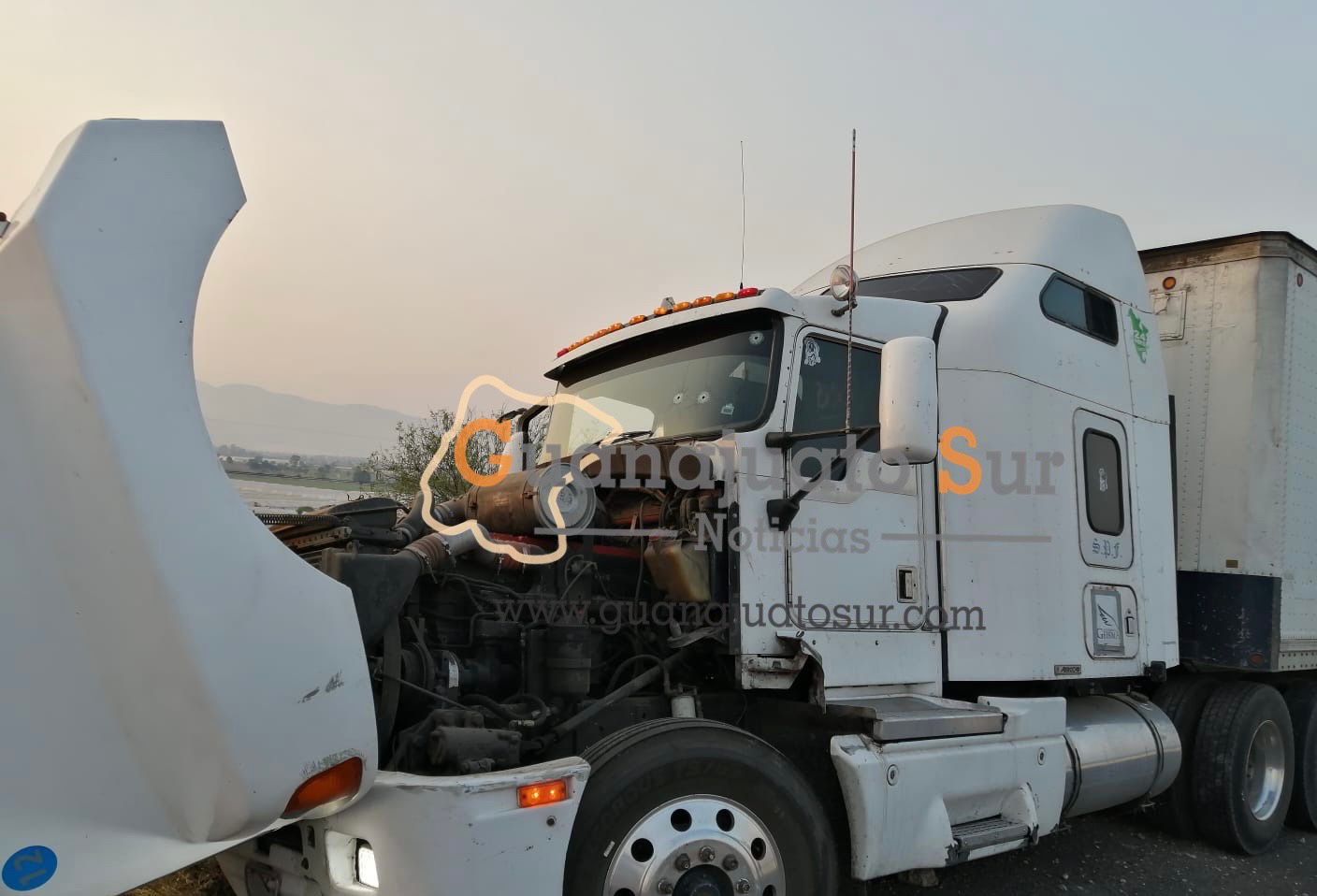 El conductor de un tráiler fue atacado por sujetos armados mientras conducía sobre la carretera Salvatierra-Celaya, a la altura de El Columpio y posteriormente se dio a la fuga tras chocar contra otro tráiler estacionado, derivado de los hechos otros dos vehículos sufrieron un accidente vehicular.