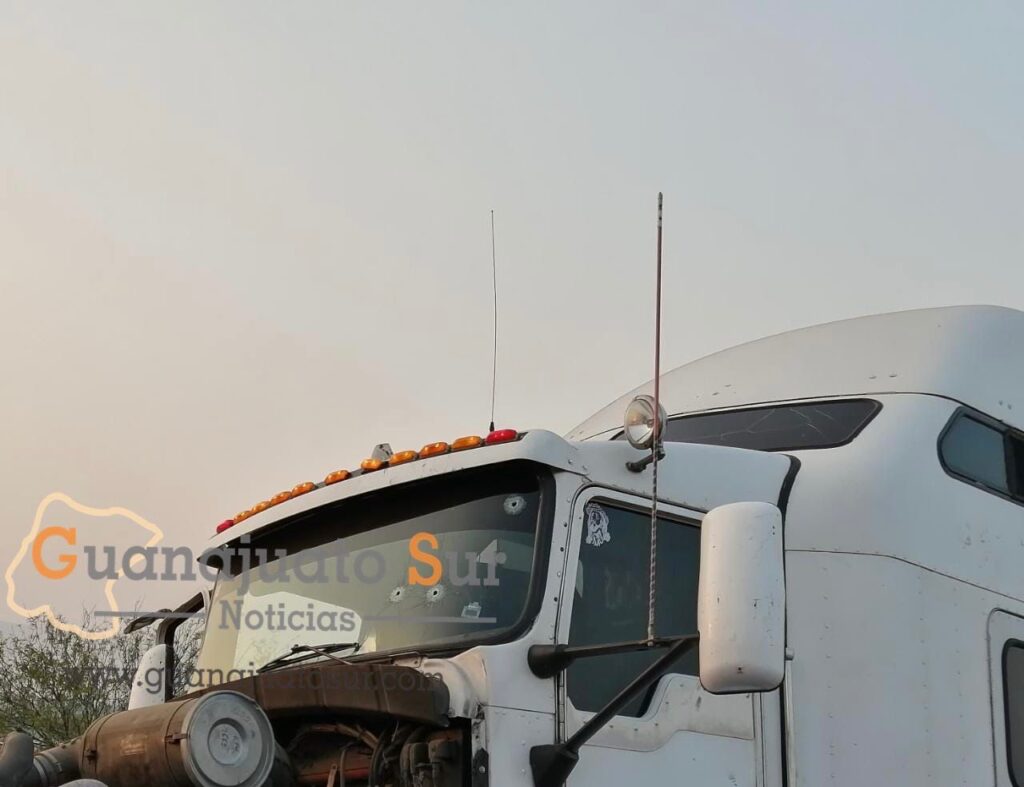 Al acudir los elementos de Seguridad Pública Municipal encontraron el tráiler con al menos 4 impactos de bala en el parabrisas, sin embargo, no se dio con el paradero de el conductor que se dio a la fuga.
