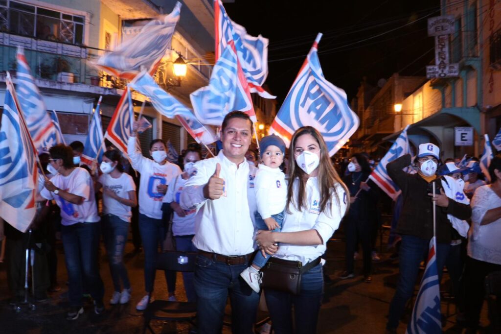 En punto de las 21:00 horas Germán Cervantes Vega se dio a conocer como el candidato a la Alcaldía de la primera ciudad de Guanajuato, acompañado de su esposa, su hijo, su planilla y gente que lo apoya.