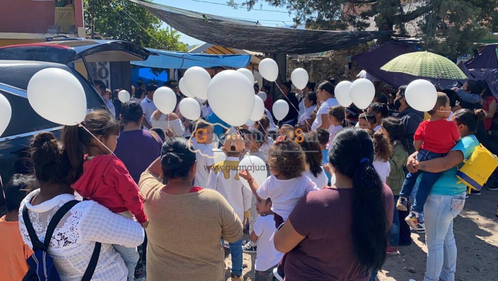 Sus compañeros de la escuela, amigos y familiares vestían de blanco, llevaban globos y ante una gran tristeza aplaudieron y despidieron soltando los globos para acompañar en su viaje a Juanito.