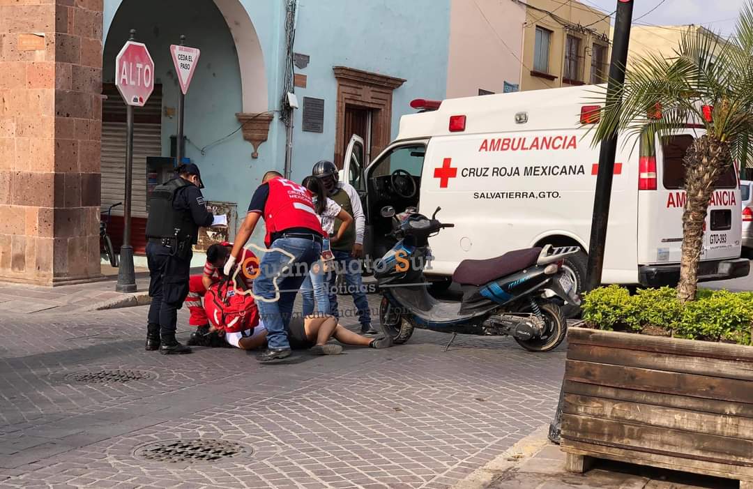 Alrededor de las 17:30 horas fue reportado a la central de emergencias 911 un accidente vehicular luego de que dos mujeres que viajaban en una motoneta sufrieron un derrape en el centro de Salvatierra.