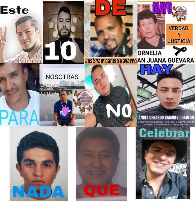 Junto a las imágenes se colocó una cartulina con la leyenda “En Salvatierra no podemos festejar el día de las madres, aún nos faltan muchos“, haciendo referencia al dolor que sienten todas las madres de familia que no pueden tener a sus hijos en casa porque están desaparecidos o muertos.