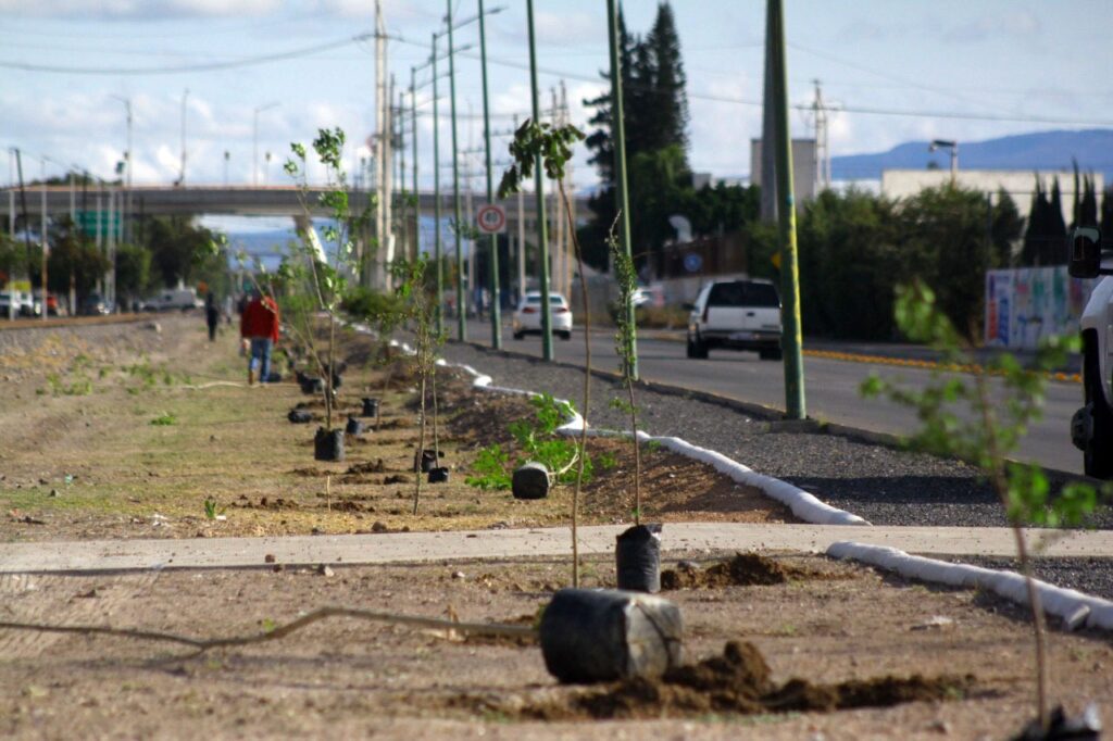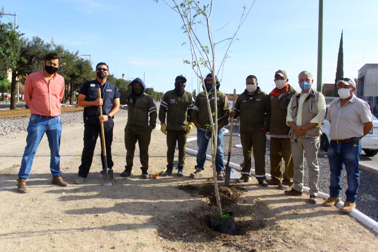 En total se plantaron 133 árboles de las especies guamúchil, palo blanco y fresno, los cuales ayudarán a combatir el cambio climático, dar sombra, proveer de mayor oxigeno y a la mejora de la imagen urbana.