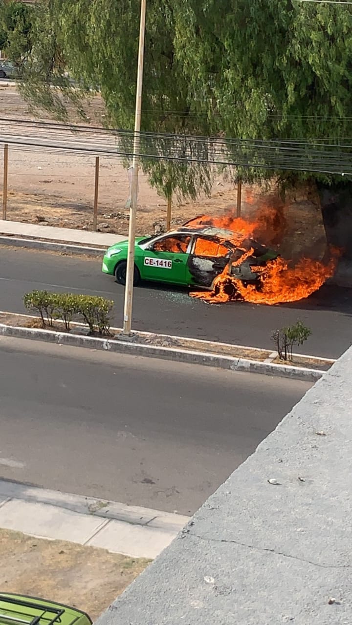 Los hechos se registraron sobre la Av. Olivos Norte donde el esfuerzo de los habitantes en apagar las llamas con mangueras y cubetas con agua fue inútil ya el chófer del taxi color verde CE-1416 pereció calcinado.