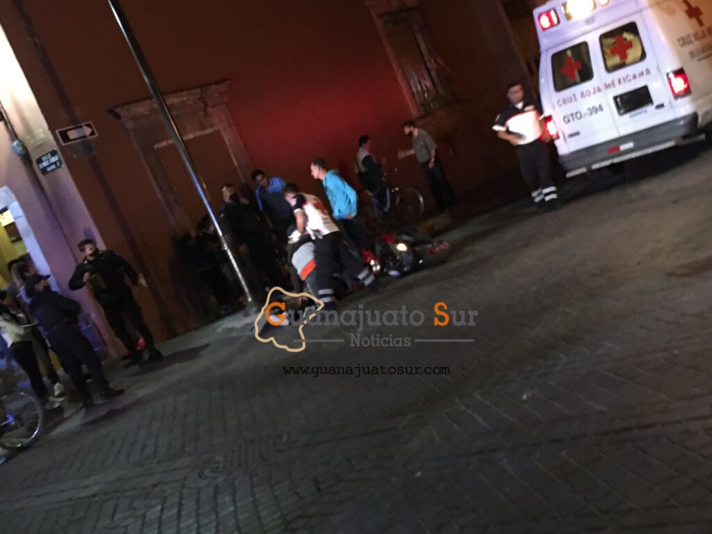 Poco antes de las 22:00 horas fue reportado a la central de emergencias 911 sobre un accidente vehicular del tipo choque luego de que el conductor de un vehículo atropellara al conductor de una motocicleta en la esquina del jardín principal, entre las calles Miguel Hidalgo con 16 de septiembre.
