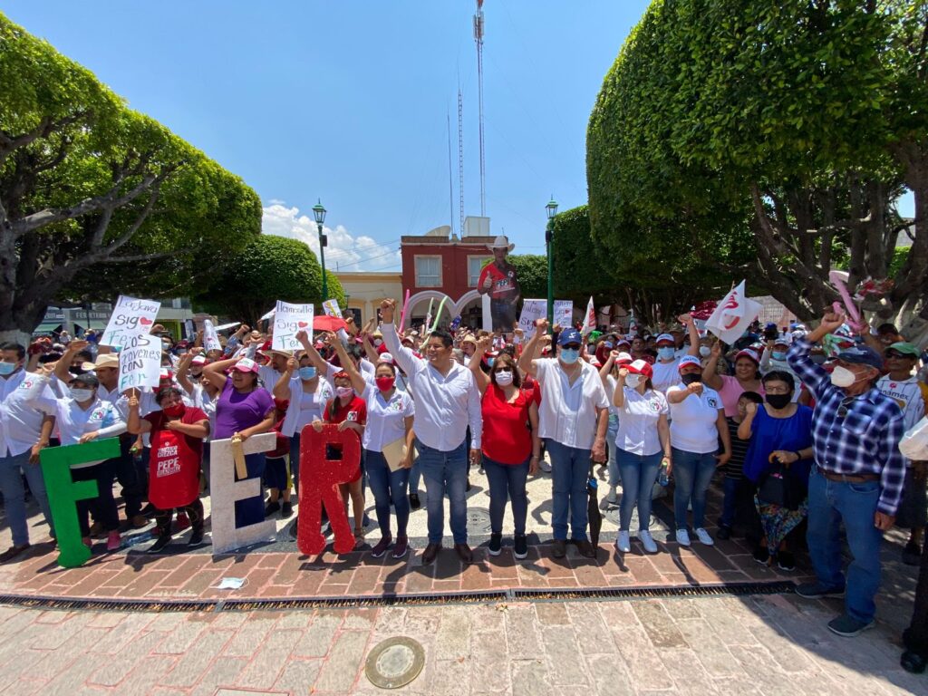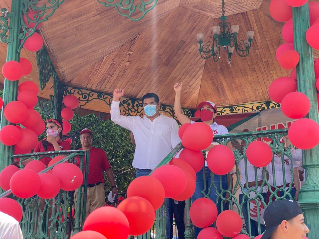 El recorrido finalizó con un mitin en en kiosco del jardín principal, ubicado frente a presidencia, donde la multitud continuaba reforzando el apoyo con el candidato y su equipo.
