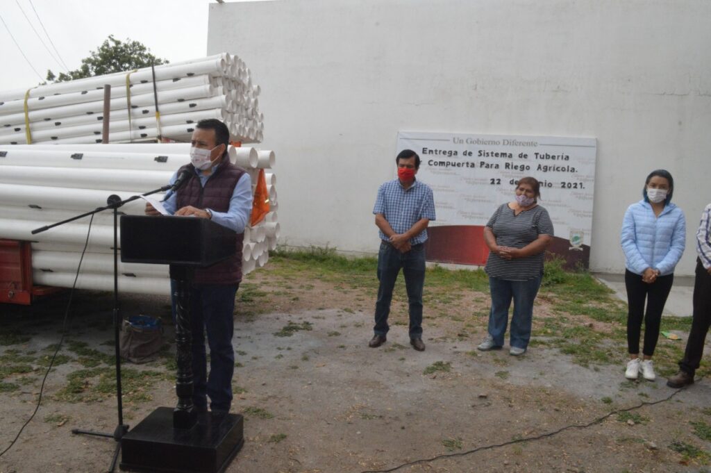 A través del Programa “Sistema de Tubería por Compuerta para Riego Agrícola” se optimiza el transporte del agua, así como su uso adecuado, además de incrementar el área de producción de los sistemas de riego en el municipio.