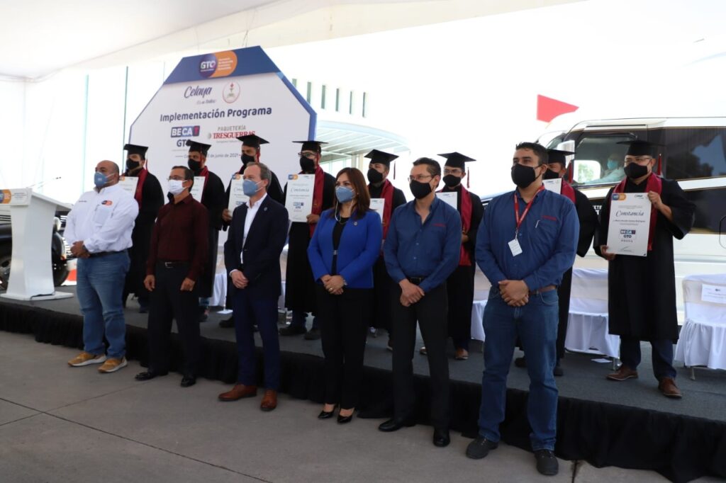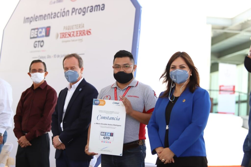 La presidenta Elvira Paniagua participó en el arranque de capacitaciones y entrega de certificados a través del programa “Bécate Gto”, para trabajadores de la empresa celayense Autotransportes Tresguerras, a la que reconoció como una de las más representativas del municipio, con proyección internacional.