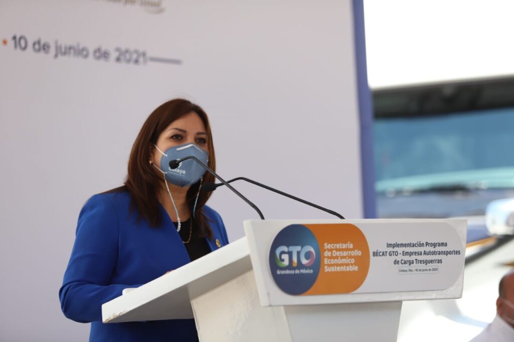 En el evento, acompañada por el secretario de Desarrollo Económico del estado, Mauricio Usabiaga, y el director de Autotransportes Tresguerras, Jorge Enrique Almanza, la alcaldesa participó en la entrega de ocho certificados a operadores de tracto camión que concluyeron su capacitación gracias a la beca y dio arranque a otro ciclo de capacitaciones, para otros ocho.