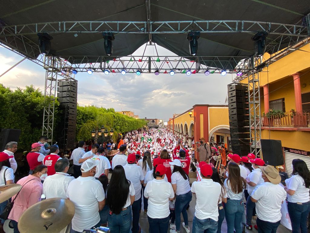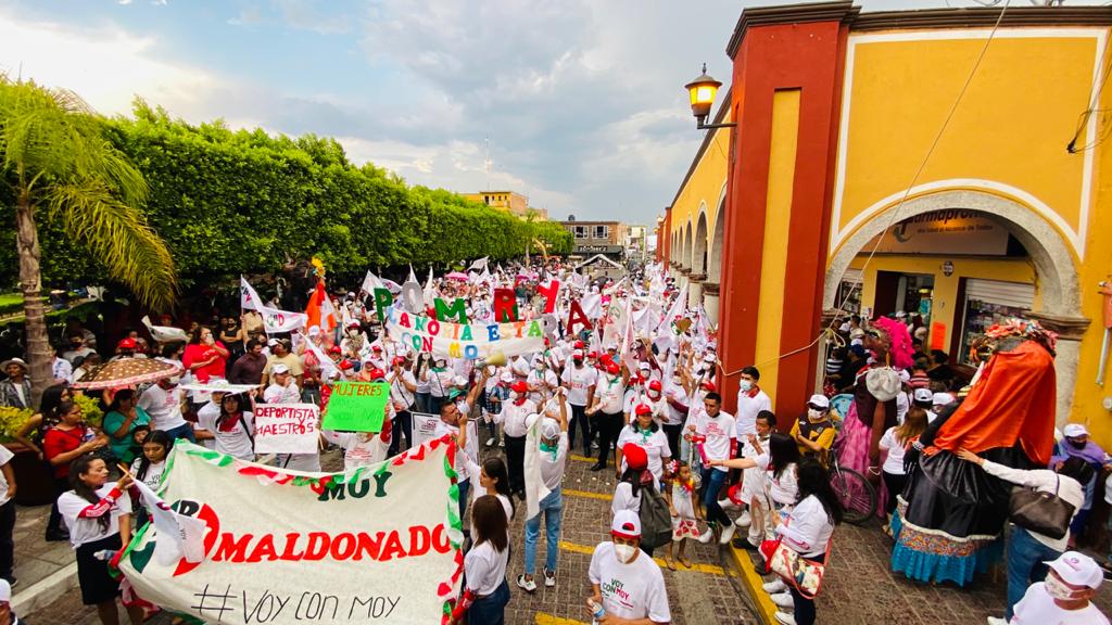 Se llevó a cabo el cierre de campaña del candidato priísta Moisés Maldonado López, quien acompañado de miles de personas comenzó su recorrido en el Arroyo Hondo con destino al jardín principal de Tarimoro.