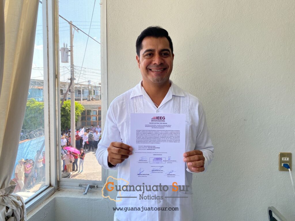 Moisés Maldonado López recibió la constancia de mayoría de votos por parte del Consejo Municipal Electoral del Estado de Guanajuato y posteriormente realizó un recorrido con sus simpatizantes por las calles principales del municipio, comprometiéndose a ganarse la confianza de las personas que no votaron por el.