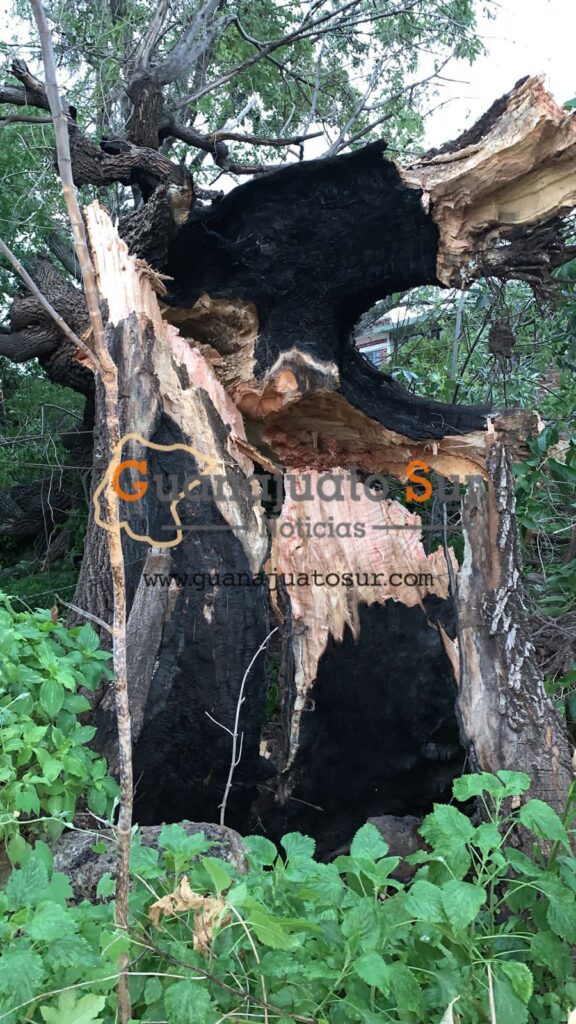Cabe mencionar que hace aproximadamente dos años el tronco del árbol caído había sido incendiado con la intención de extraer la miel de una colmena, lo que provocó que se quedara totalmente hueco por lo que no resistió más el peso.