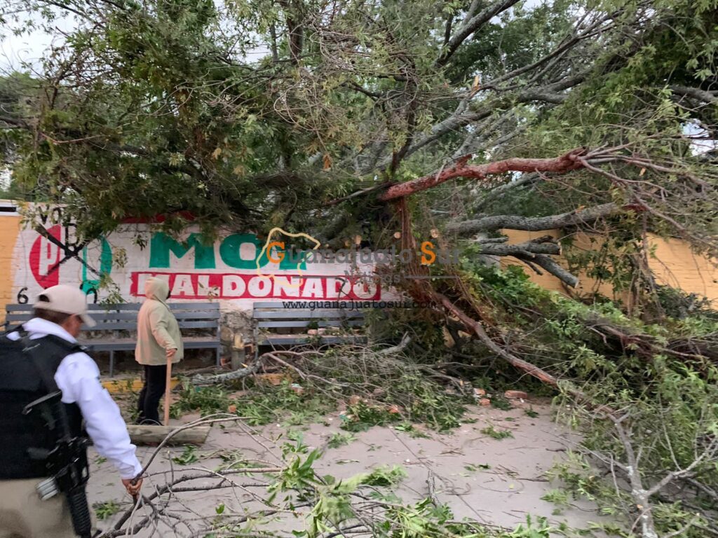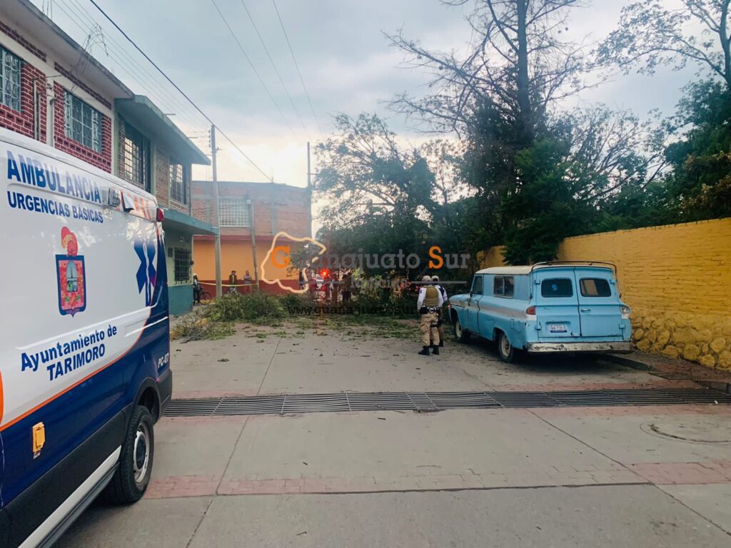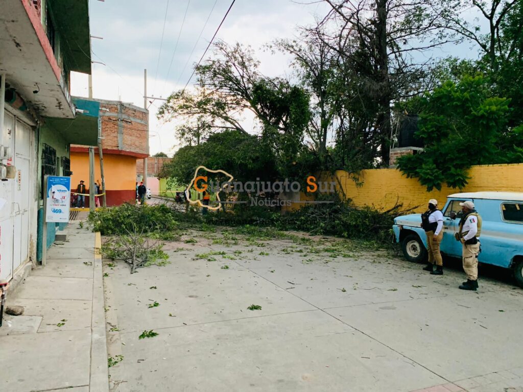 Poco después de las 19:00 horas fue reportado a la central de emergencias 911 que un árbol que se encontraba en el interior de una huerta cayó hacia la calle Arteaga, a la altura de la capilla de La Loma.