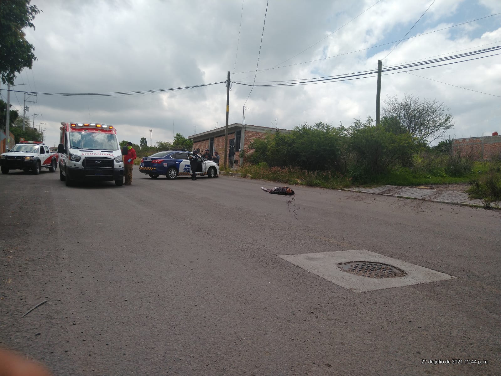 Elementos preventivos y Protección Civil se concentraron cerca del salón Residencial con dirección al hospital comunitario donde encontraron a un varón de identidad desconocida sin vida quien vestía una camisa a cuadros de color azul y un pantalón de mezclilla mismo que presentaba lesiones producidas por arma de fuego en el cráneo.