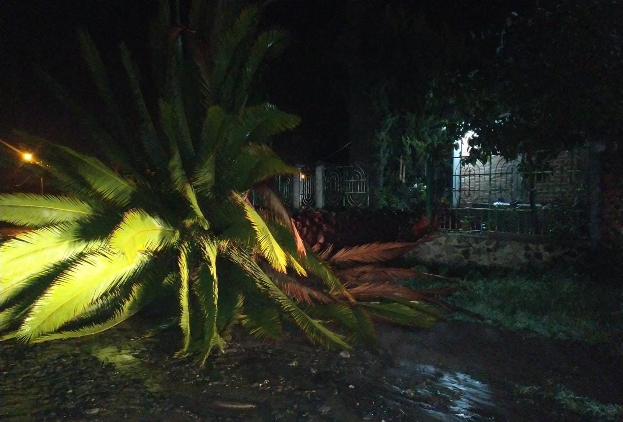 Cabe destacar que no se registraron personas lesionadas, sin embargo, una barda sufrió daños estructurales a consecuencia del impacto de la palmera en su contra.