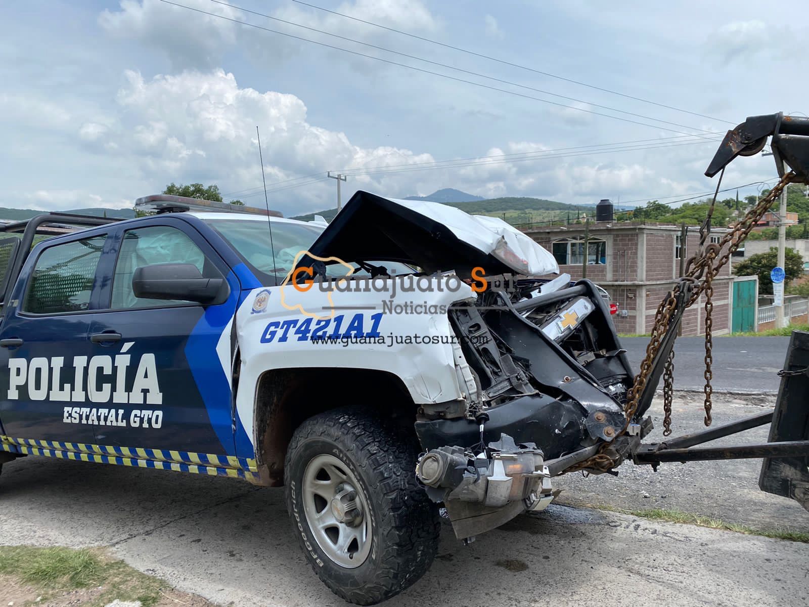 De inmediato se presentaron en el lugar, elementos de las FSPE, quienes se dieron cuenta que en el accidente se encontraba una unidad de su corporación, así como una camioneta color rojo de la marca Dodge RAM, lamentablemente el conductor de la Pick Up resultó lesionado por lo que fue necesario trasladarlo al Hospital Comunitario del municipio de Jerécuaro.
