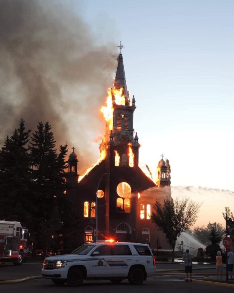 Asimismo indicó que otra iglesia fue reportada en llamas con un aproximado de una hora de diferencia, e inmediatamente se reportaron otras dos iglesias de Okanagan destruidas.